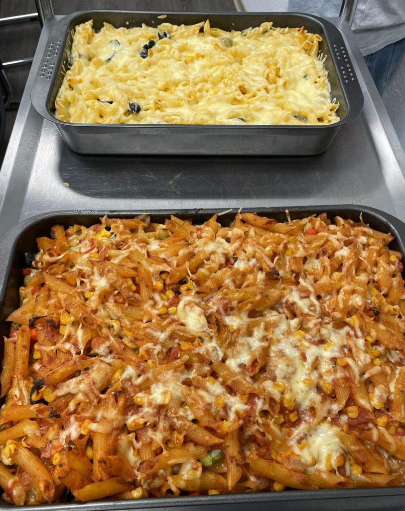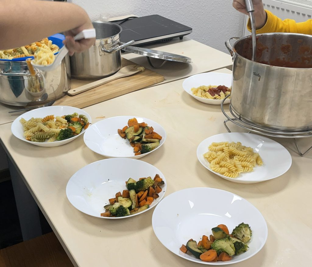 👉 Zum Schluss Nudeln und Soße zusammen servieren.