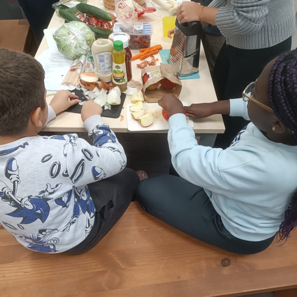 1. Schäle die Zwiebeln und den Knoblauch (bitte mit einem Erwachsenen).