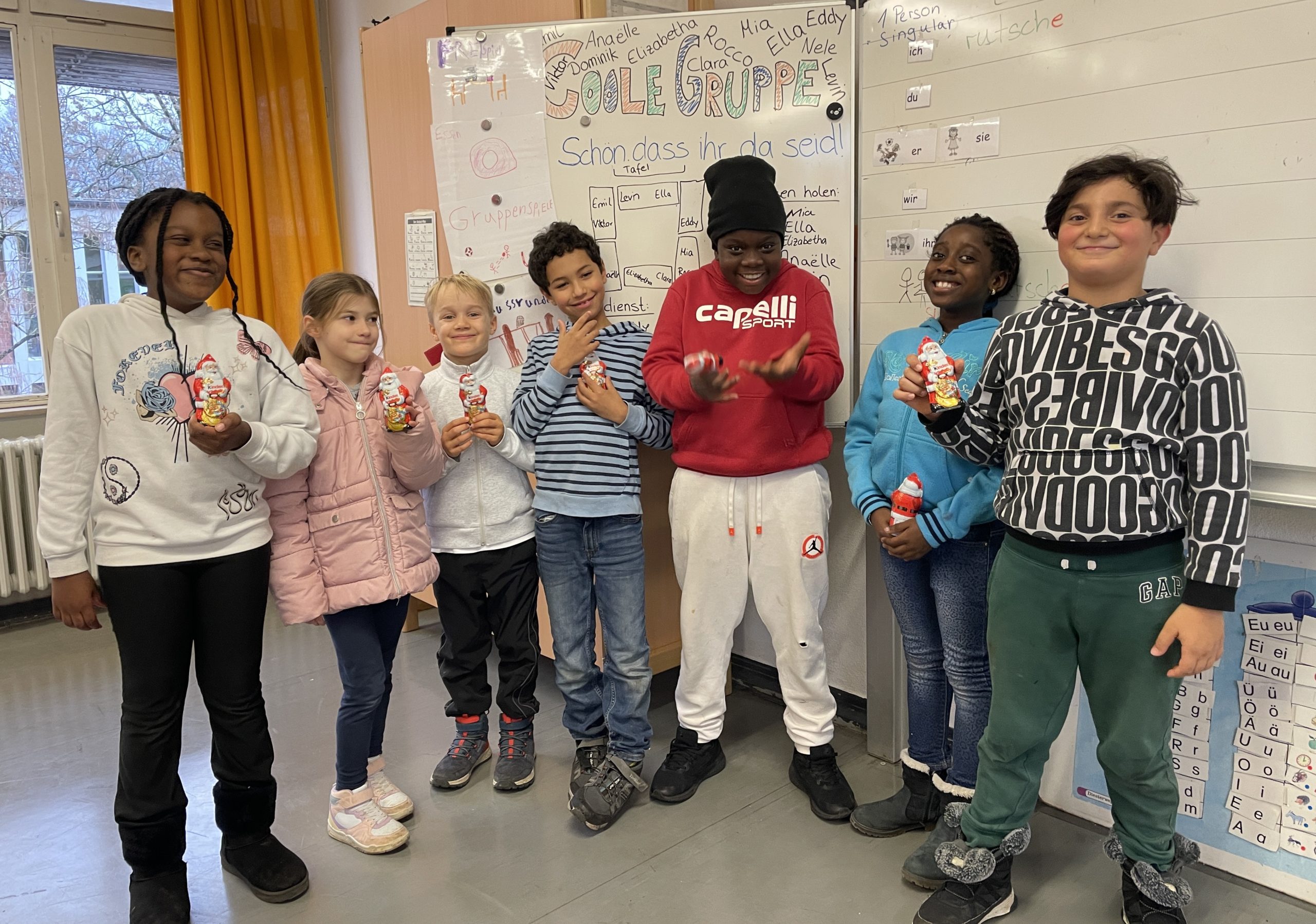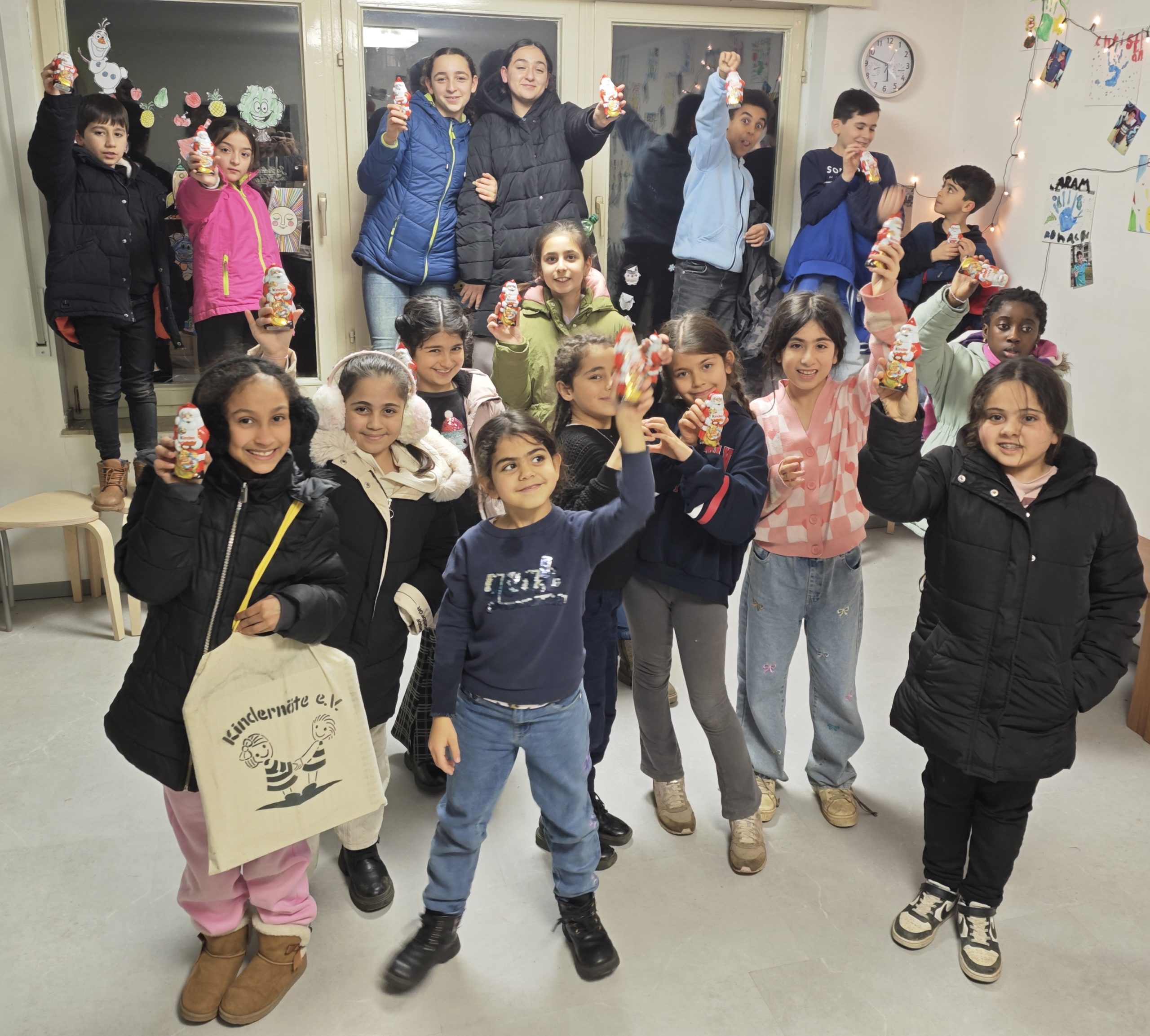 Auch in diesem Jahr bedachte er all unsere Gruppenkinder, und auch in diesem Jahr war er überall zur gleichen Zeit, wirklich erstaunlich! Über die Schoko-Nikoläuse, die er verschenkte, freuten sich unsere Straßen-Kinder, unsere Lückenkinder und unsere Spaß-Schul-Gruppen. Stellvertretend für alle 180 Pänz sagen die Cologne Styler, die Gemischte Tüte, die Coole Gruppe und die Freundegruppe ein großes Nikolaus-Dankeschön!