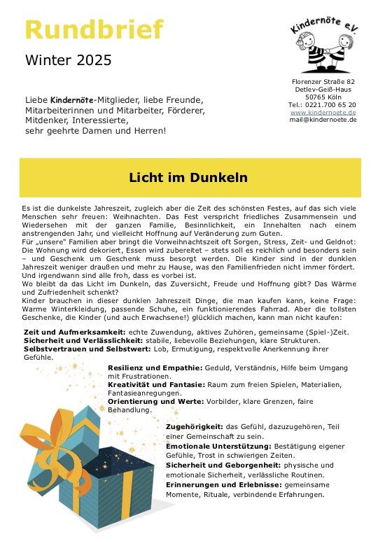 liebe Kindernöte e.V. – Mitglieder und -Förderer,