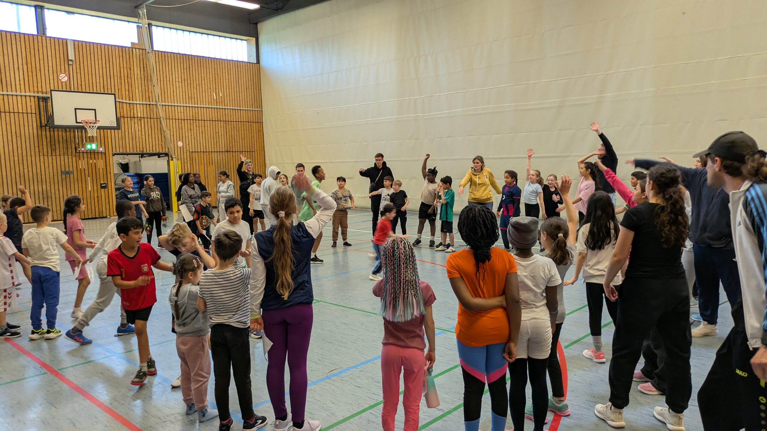 Sie hatten sich beim Eierlaufen&Sackhüpfen, in einem Blindenparcours und beim Ball-Hochhalten bewährt, den Lesekönig getroffen, Memory und Kopfrechnen geschafft, mysteriöse Rätsel gelöst und den Wissenssprint absolviert. In Mannschaften Völkerball, Handball, Basketball, Brennball und Wikinger-Schach gespielt, Weitwurf, Turnen und Staffellauf erlebt – alle machten super mit!